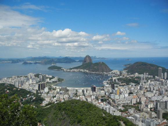 Blick auf Rio de Janeiro und den" Zuckerhut" der übrigens in Brasilien" Süsses Brödchen" heißt.
